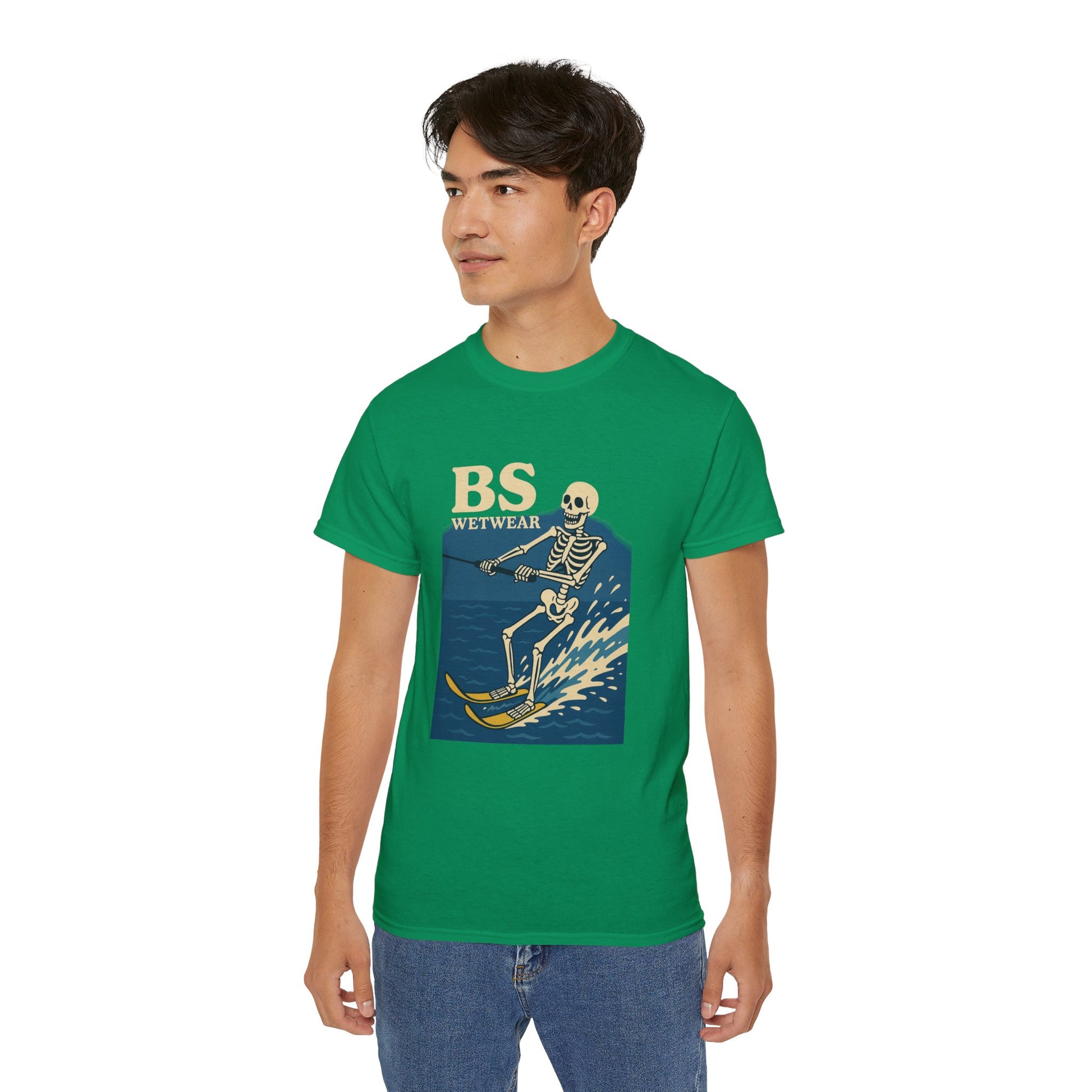 Ever wonder what happens when death takes a vacation? He grabs a pair of skis, hits the water, and rocks BS Wetwear like the afterlife depends on it. This skeleton isn’t just coasting through the underworld—he’s carving waves with no muscles, no fear, and way too much attitude. No organs? No problem. Our gear is so cool, even the dearly departed can’t resist the drip. Whether you’re catching waves or just ghosting your responsibilities, BS Wetwear makes sure you do it in bone-crushing style. Life’s short. Dress like you stole it from the other side.