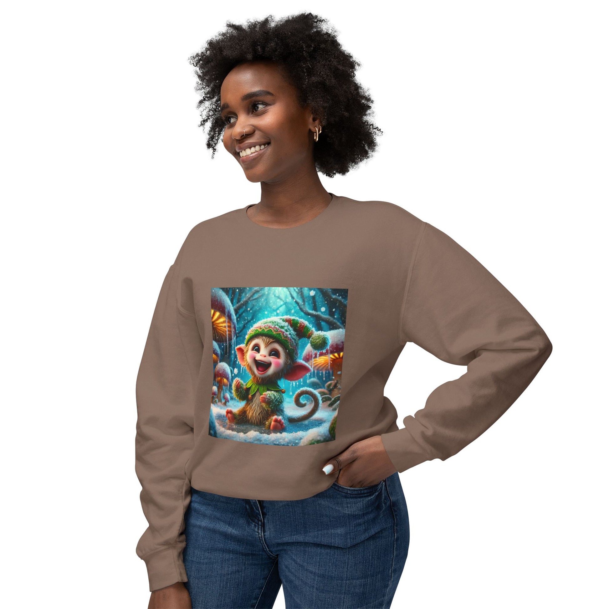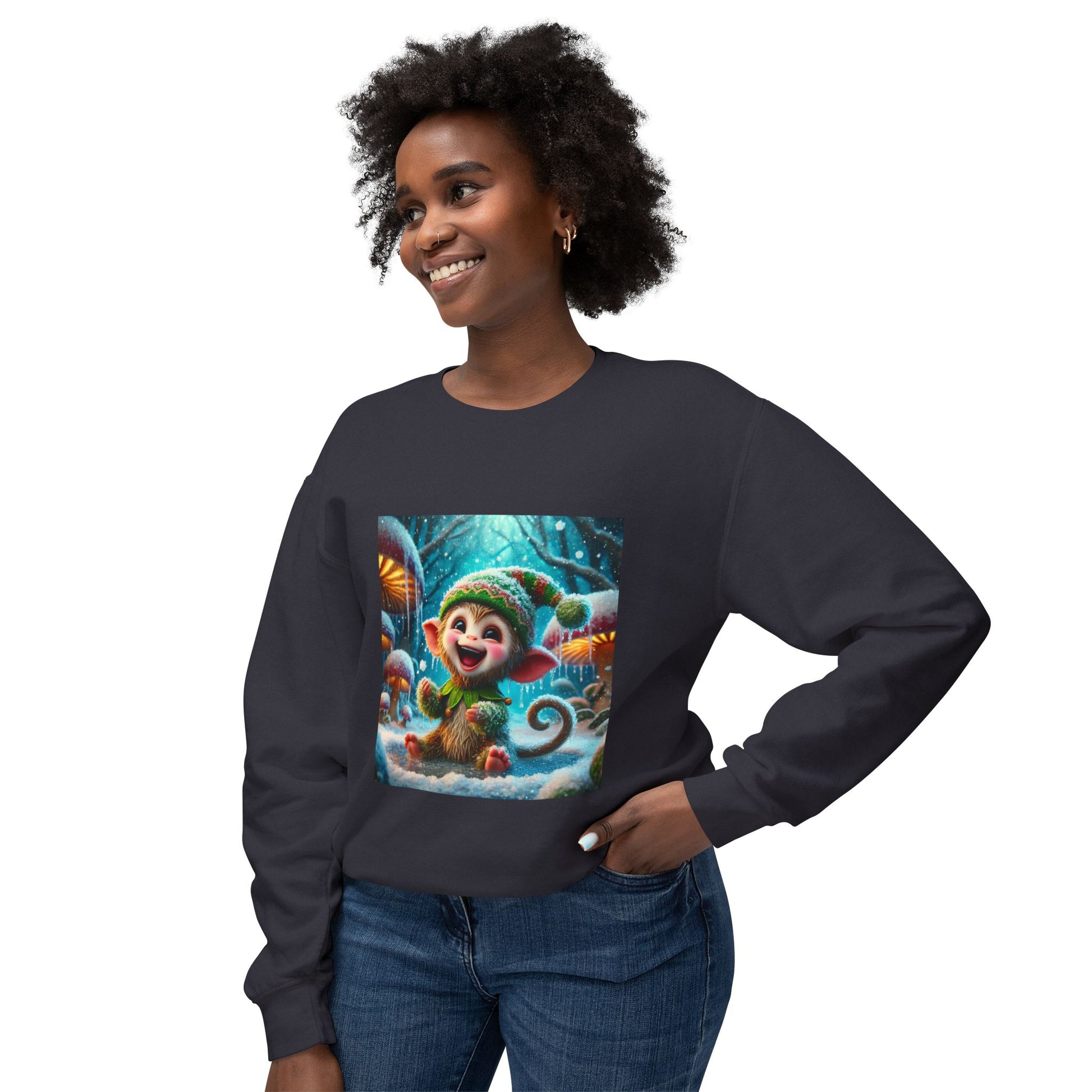 The ultimate winter mischief-maker! This wet, happy little elf-monkey hybrid is living its best life in the snow, with fur so wet it's starting to freeze! Still smiling, still playful, this creature proves that even in the coldest conditions, a good soak can't stop the fun!"**
