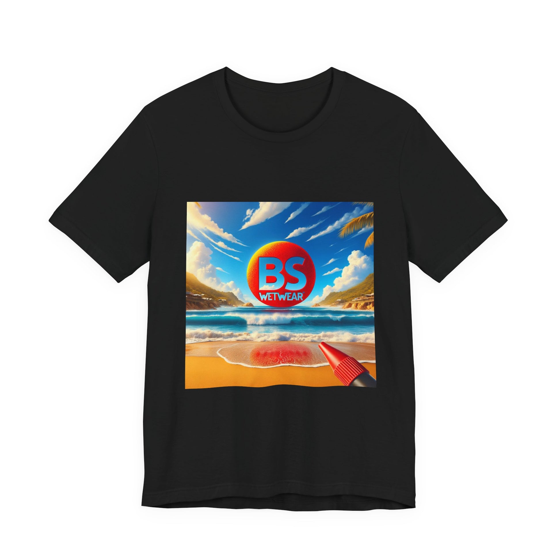 "Stride into any room with confidence in BS Wetwear’s signature logo tee, where style meets the high tide of fashion. This isn't just any shirt; it's a beacon of boldness, splashed with our unmistakable logo that's as daring as a deep-sea dive. With vibrant colors that shout 'summer' all year round, this tee is your go-to for making a statement without saying a word. Whether you’re chilling on a boat or braving urban streams, this shirt is crafted to keep you comfortably in the spotlight. It’s a wardrobe essential for those who want to broadcast their love for the unique, the wet, and the wonderfully wild. So, put on this shirt and let the world know: when it comes to fashion, you dive in headfirst!".