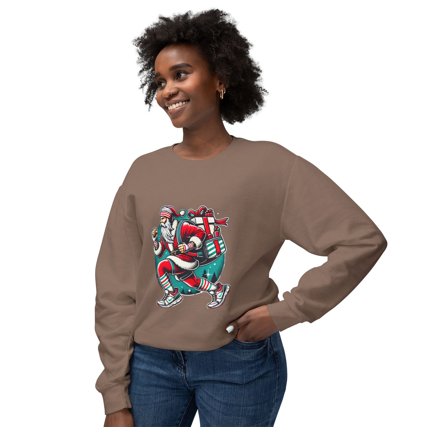 Celebrate the season with a splash of humor in our Merry Fitness Santa Sweatshirt! Watch Santa sprint into the holidays, decked out in his festive fitness attire, complete with a jolly red and white striped headband and matching running shoes. This cozy sweatshirt captures the essence of holiday cheer and fitness fun, making it a perfect pick for your winter wardrobe or a quirky gift. Santa's not just about flying sleighs; he’s racing to deliver gifts and laughs, proving he’s still here for the cookies and the cardio. Gear up, get merry, and maybe join Santa for a run—because this season, we’re all about those merry miles and smiles!