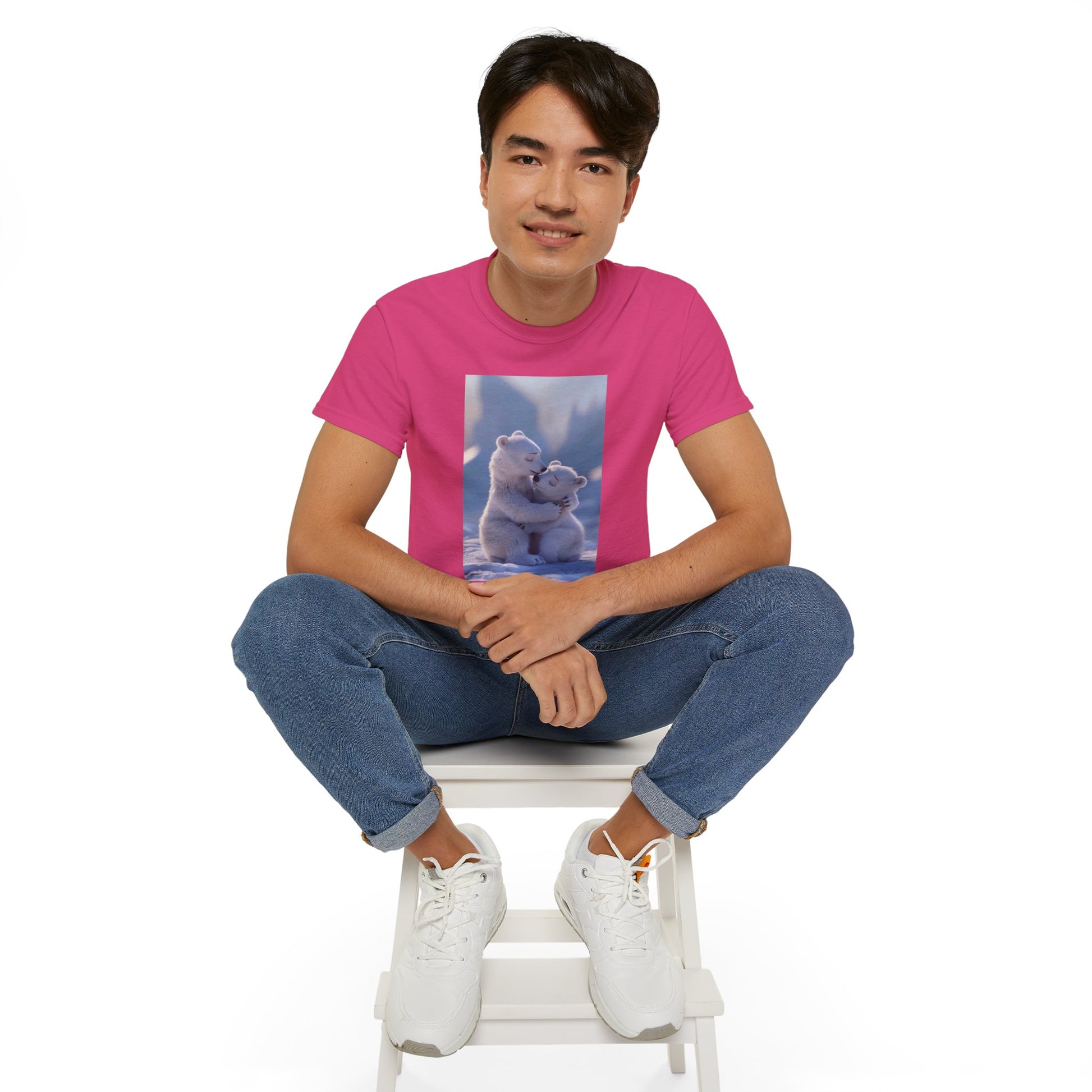 Cold outside? Not for these two—our BS Wetwear polar bears are turning the tundra into Tinder. They locked eyes across a snowdrift and next thing you know—boom—full snuggle lockdown. This shirt is 87% warmth, 12% sass, and 1% “I only hug in subzero temps.” Put it on, and you’ll attract more affection than a bear in cuddle season. Warning: side effects may include unsolicited nuzzles and avalanche-level charm.