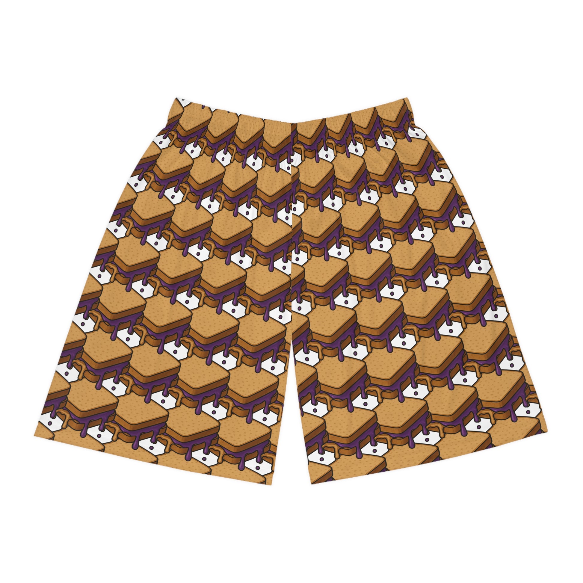 Warning: these PB&J shorts may cause uncontrollable hunger and spontaneous sandwich compliments. Rockin’ a repeating pattern of adorable, jelly-drippin’ sandwiches, these bad boys are basically your thighs wrapped in lunchtime legends. They're soft, bold, and 100% approved by cartoon snack connoisseurs everywhere. Perfect for lounging, flexing, or scaring your enemies with sandwich-based intimidation. Grab a pair before they’re gone—because let’s face it, your legs deserve to look this delicious.