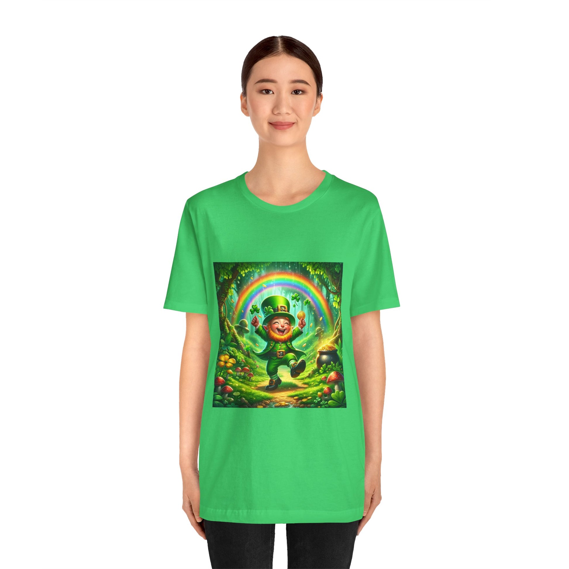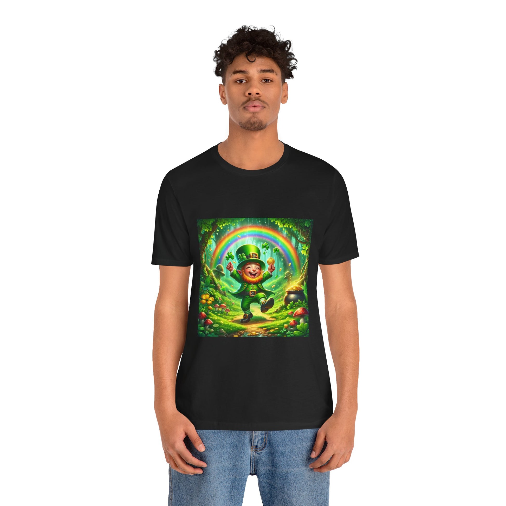 Look at this jolly little leprechaun, living his best life in a fairy-tale forest! With a smile that could outshine the rainbow he's dancing under, he's definitely found his pot of gold—and it seems to be endlessly overflowing. He's sporting a vivid green outfit that screams, "Kiss me, I'm Irish!" with a dash of irresistible charm. Even the mushrooms look like they're about to join the dance. This fella's got more luck in his buckle shoes than a cat with nine lives at a catnip festival!