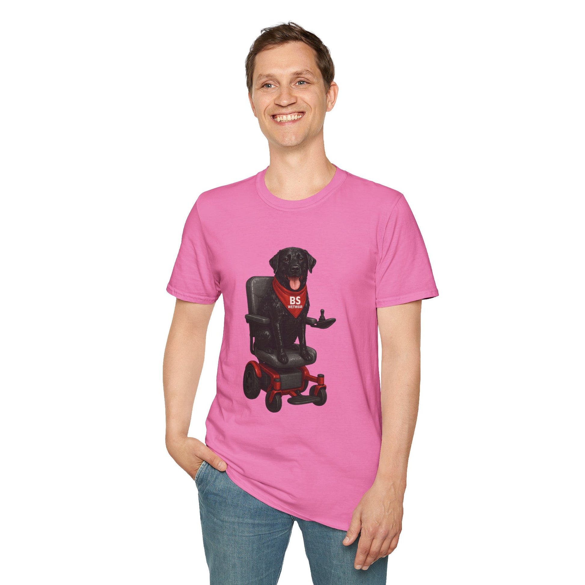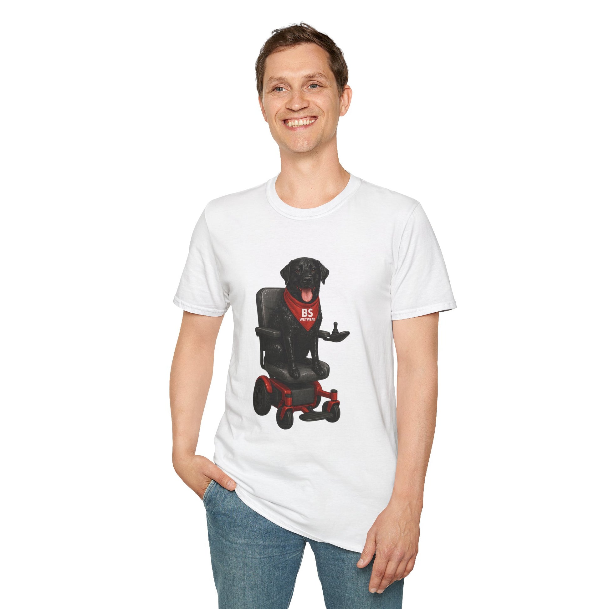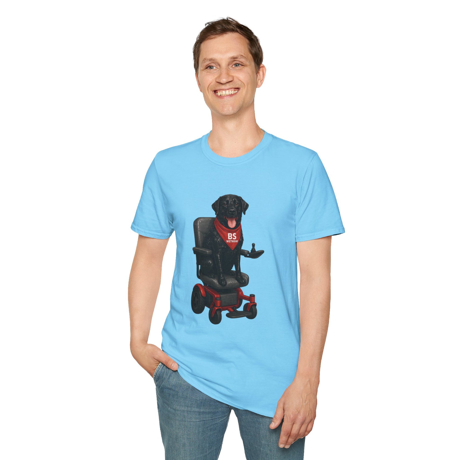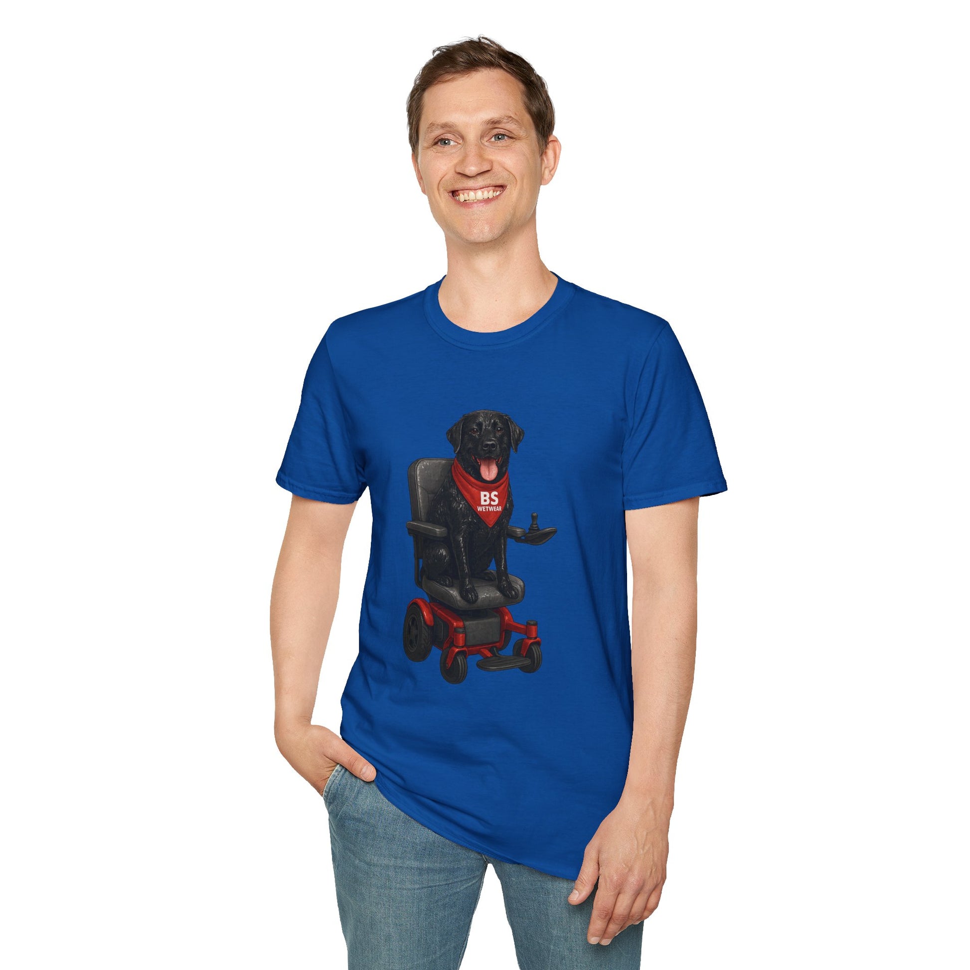 This is Tonka. Not just any black lab — the black lab. A soggy king, a wheel-bound warrior, and the heart of BS Wetwear. His fur’s damp, his wheels hum like a low thunder, and his eyes? They’ve seen everything from beach sunsets to backyard chaos — and they’re still looking forward. That red-and-black motorized throne isn’t just for style (though let’s be honest, it slaps); it’s how he takes the world head-on. The bandana? Classic BSWW — soaked in stories, memories, and maybe a little pond water. Tonka doesn’t chase balls anymore. He chases purpose. And wherever he rolls, he leaves tracks of loyalty, love, and one hell of a wet trail.