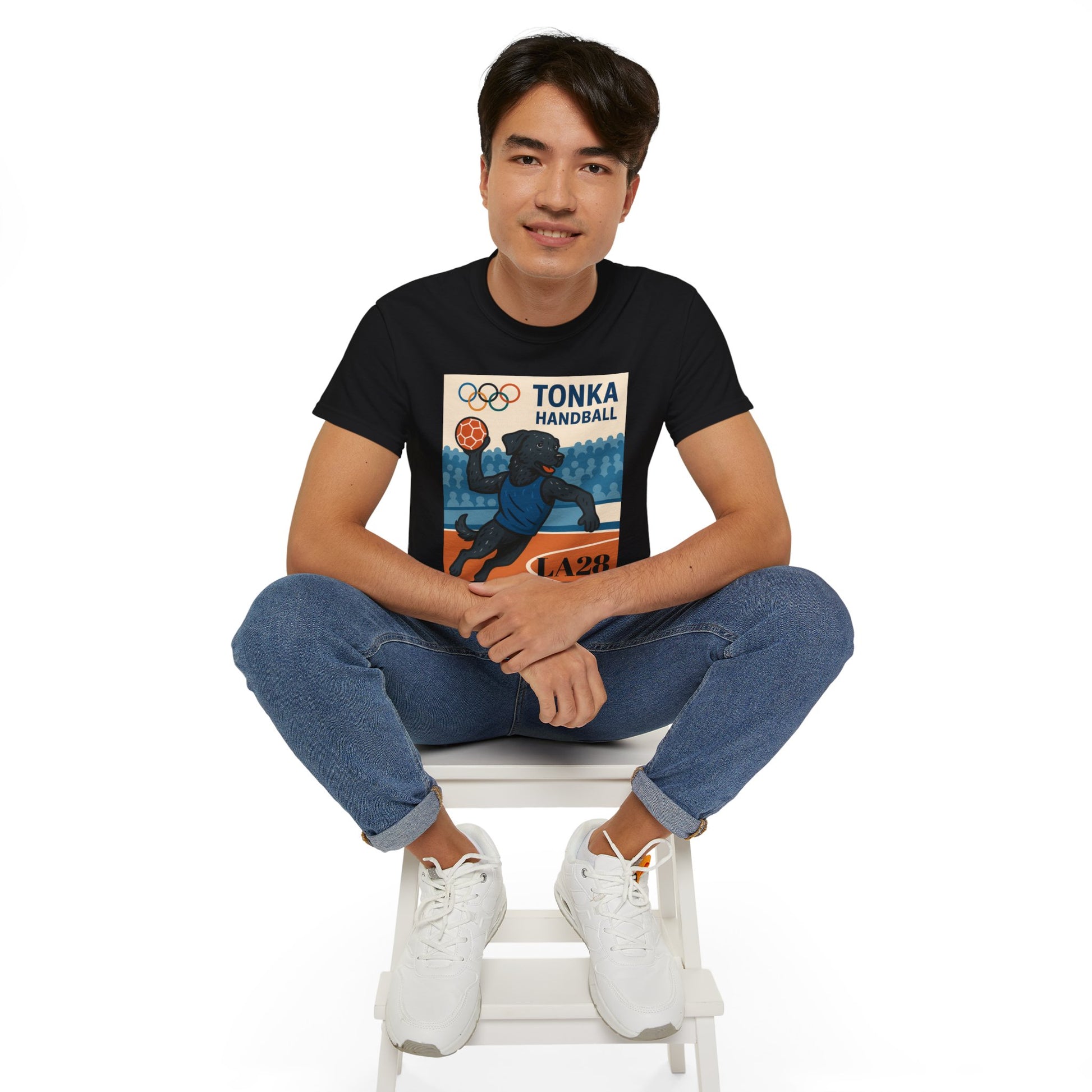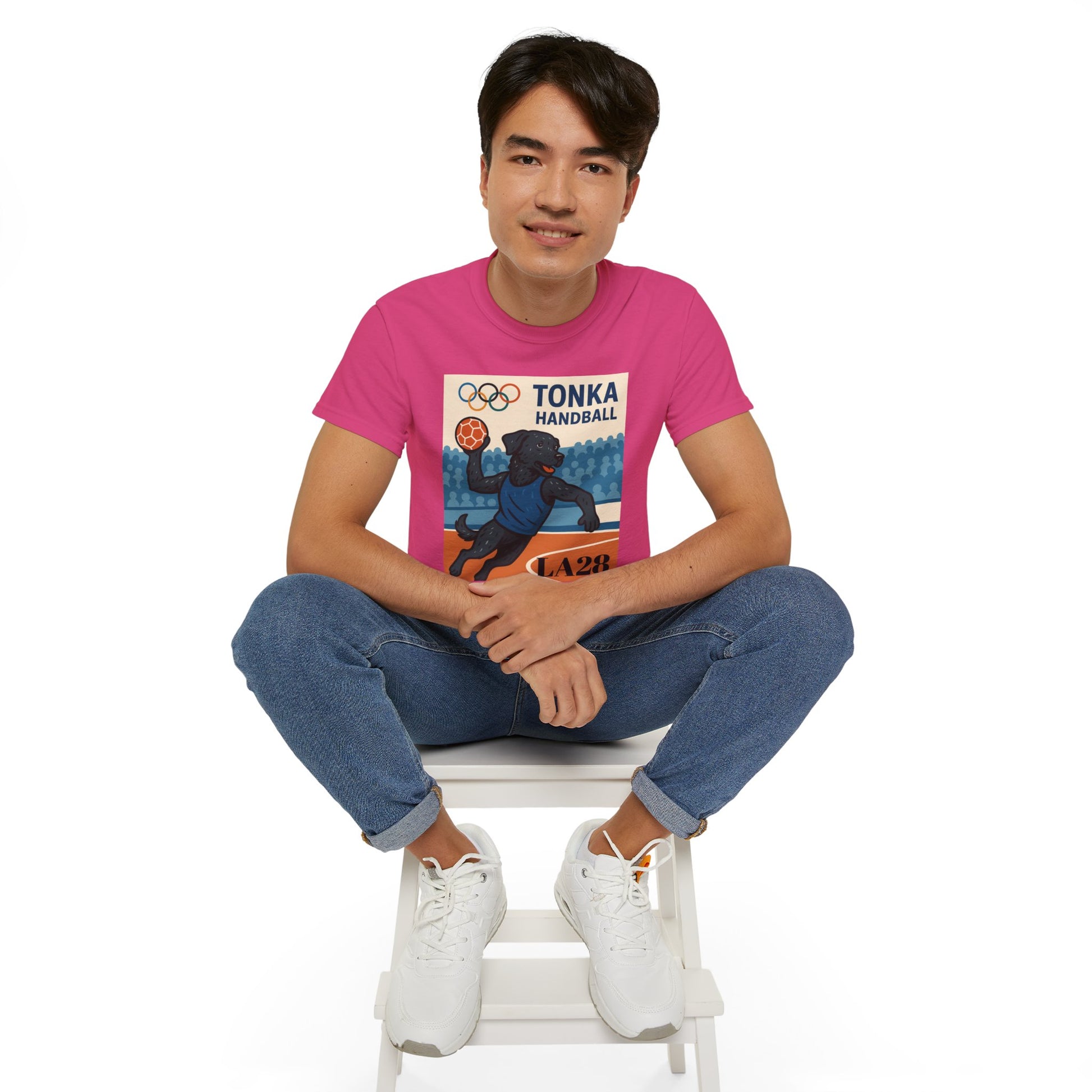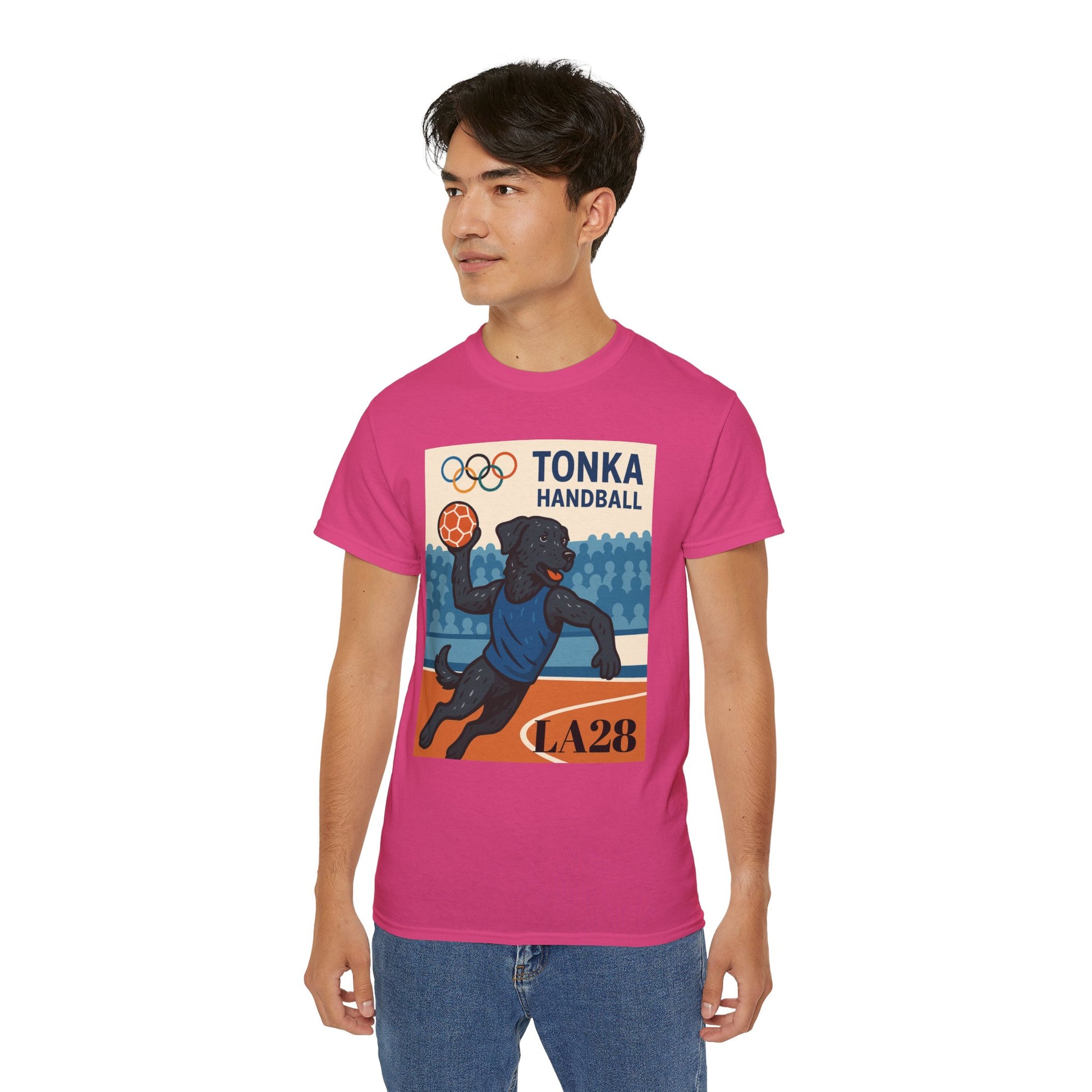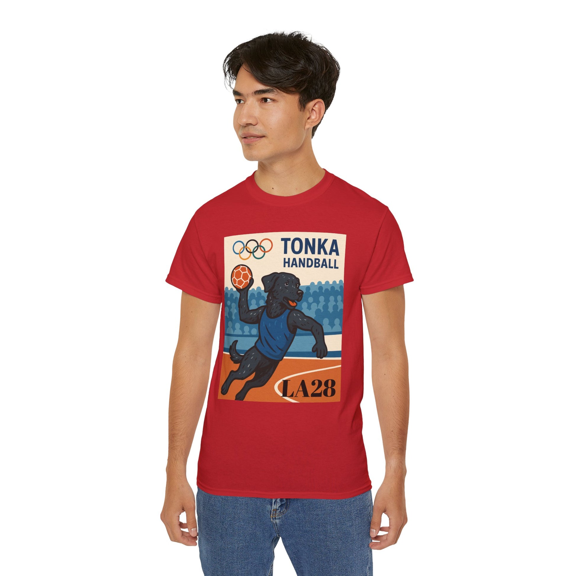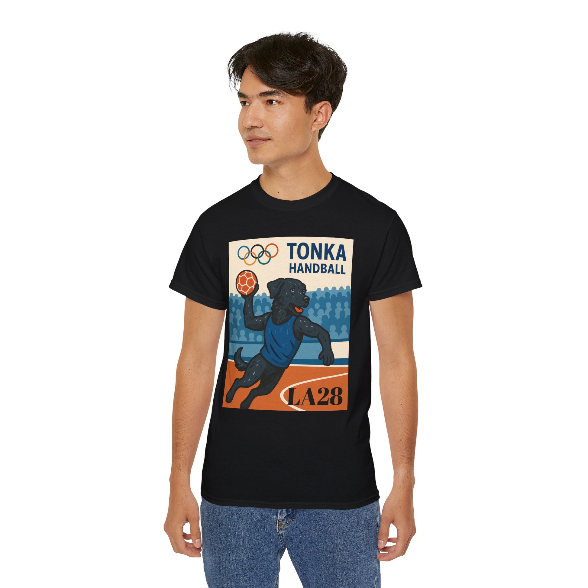 The year is 2028. The crowd is electric. And flying through the air with unmatched grace (and a mouthful of confidence) is Tonka—the black Lab breaking records and hearts in Olympic handball.