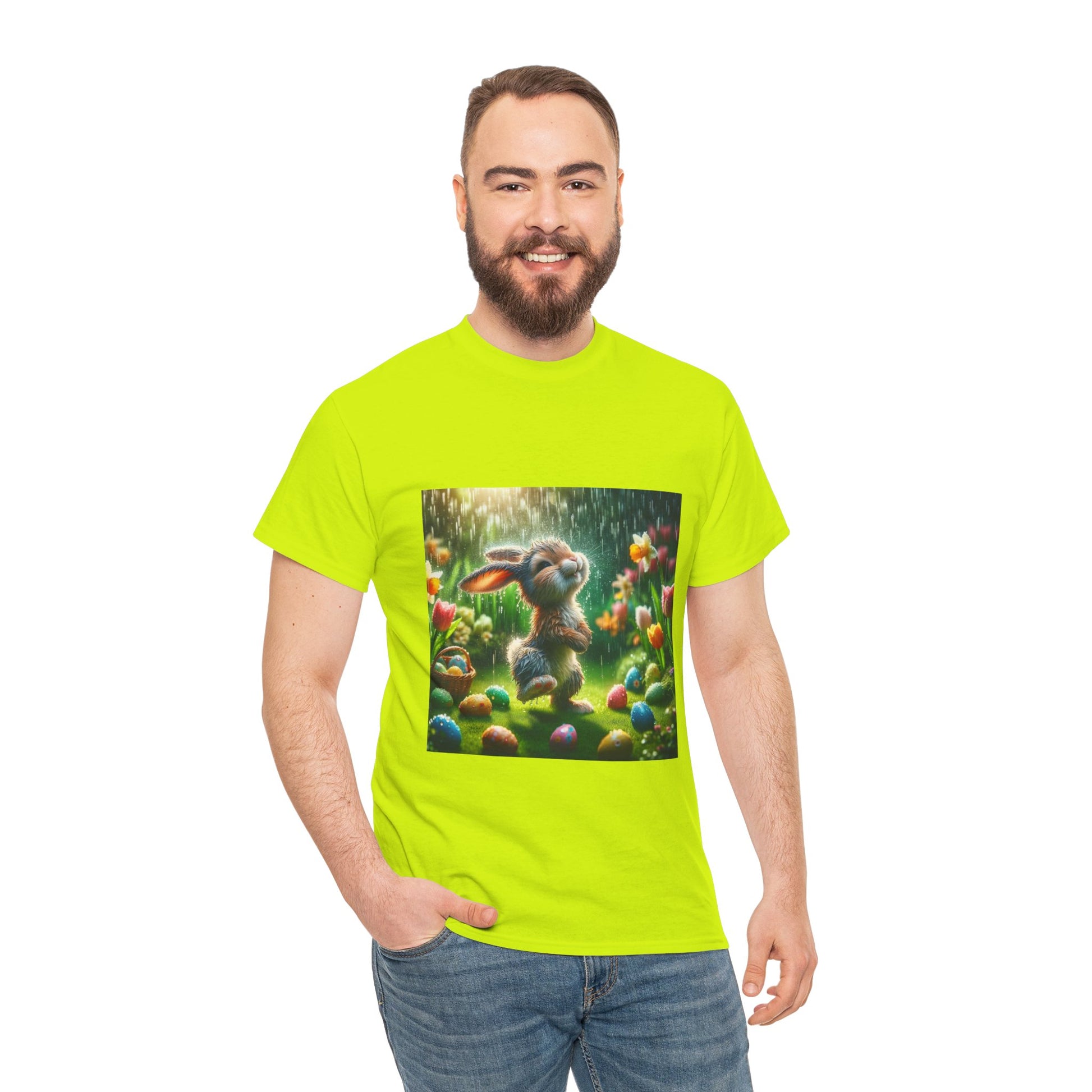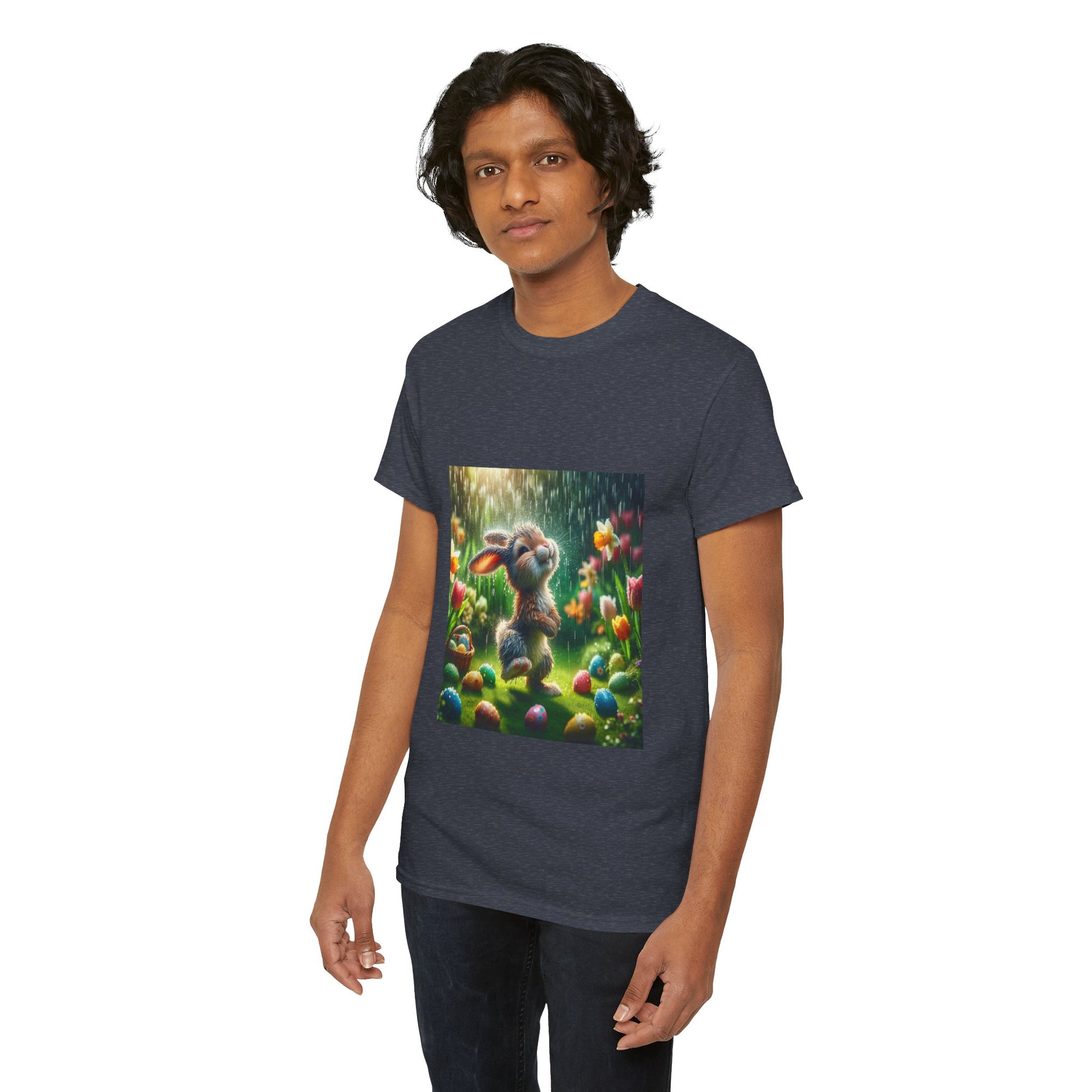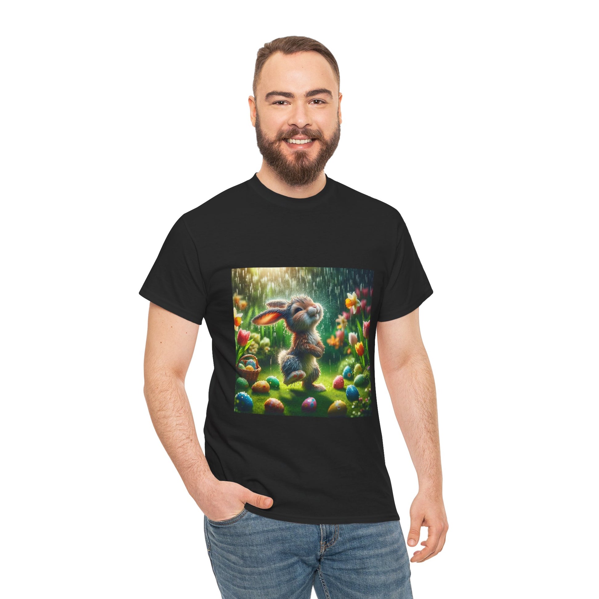 .Meet "Rainy Day Reggie," the master of mirthful mischief on misty mornings! Reggie isn't just any bunny—he's a rain enthusiast with a flair for fashion that keeps him dancing through downpours. In a lush garden, where tulips bloom brighter than a painter's palette and Easter eggs hide like jewels in the grass, Reggie turns every storm into a spectacle of splashes. Wearing his invisible crown of raindrops, he invites you to join the celebration of spring’s showers with our latest BS Wetwear collection. From sleek, water-resistant jackets to breathable, vibrant tees, each piece captures Reggie's spirit of fun and freedom. Don’t just weather the storm—strut through it with the confidence of a bunny who knows a little water only adds to the adventure. With "Rainy Day Reggie," you're not just prepared for the rain; you're ready to hop into it and emerge with a smile as bright as a rainbow!